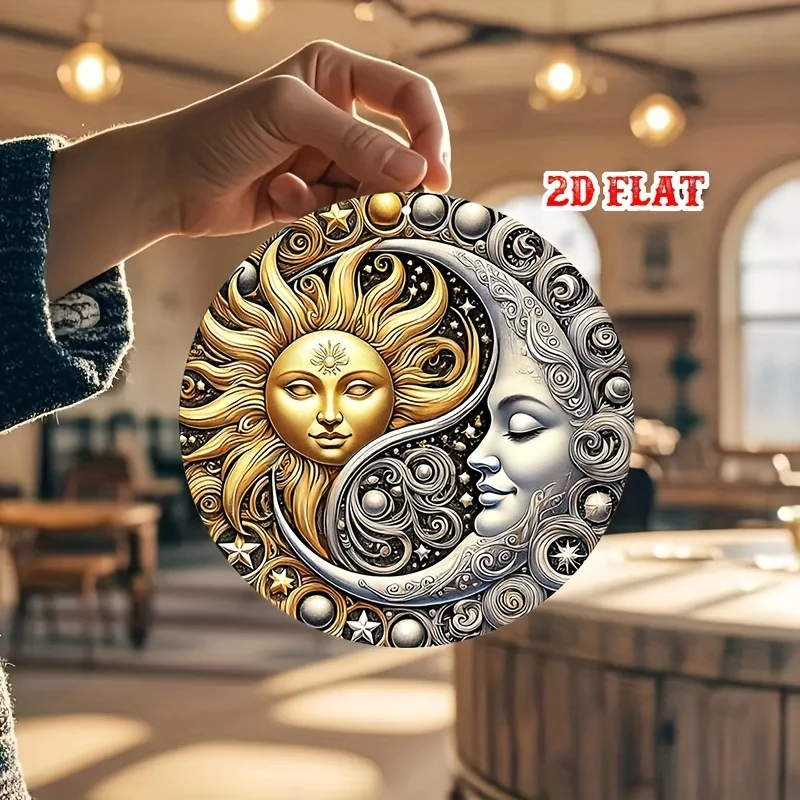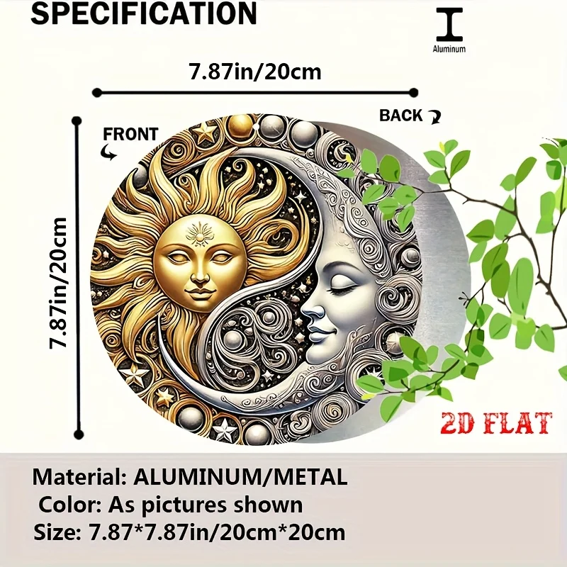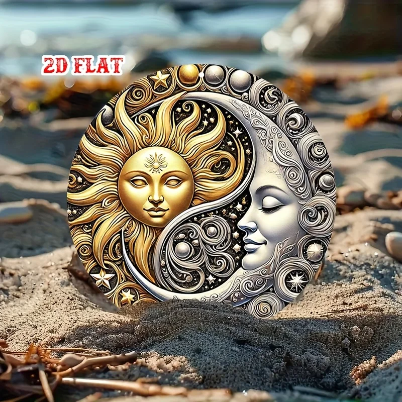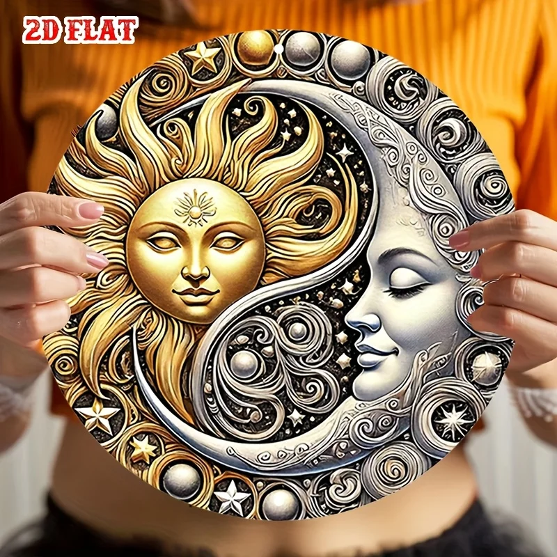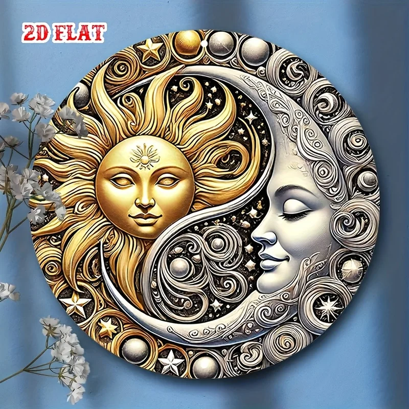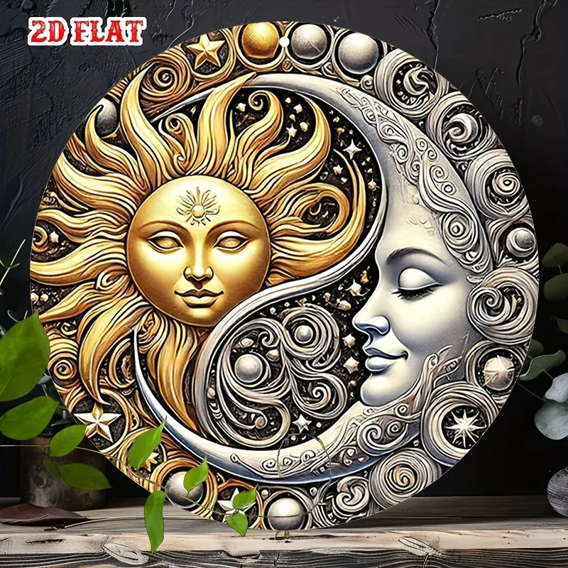 2D Flat, 2D Flat Round 1pc moon Aluminum Sign, yin yang Metal Tin Sign, celestial Aluminum Sign - sun Metal Wall Decor, Wall Dec