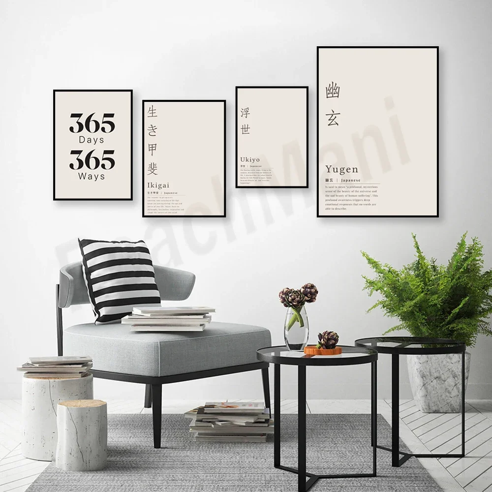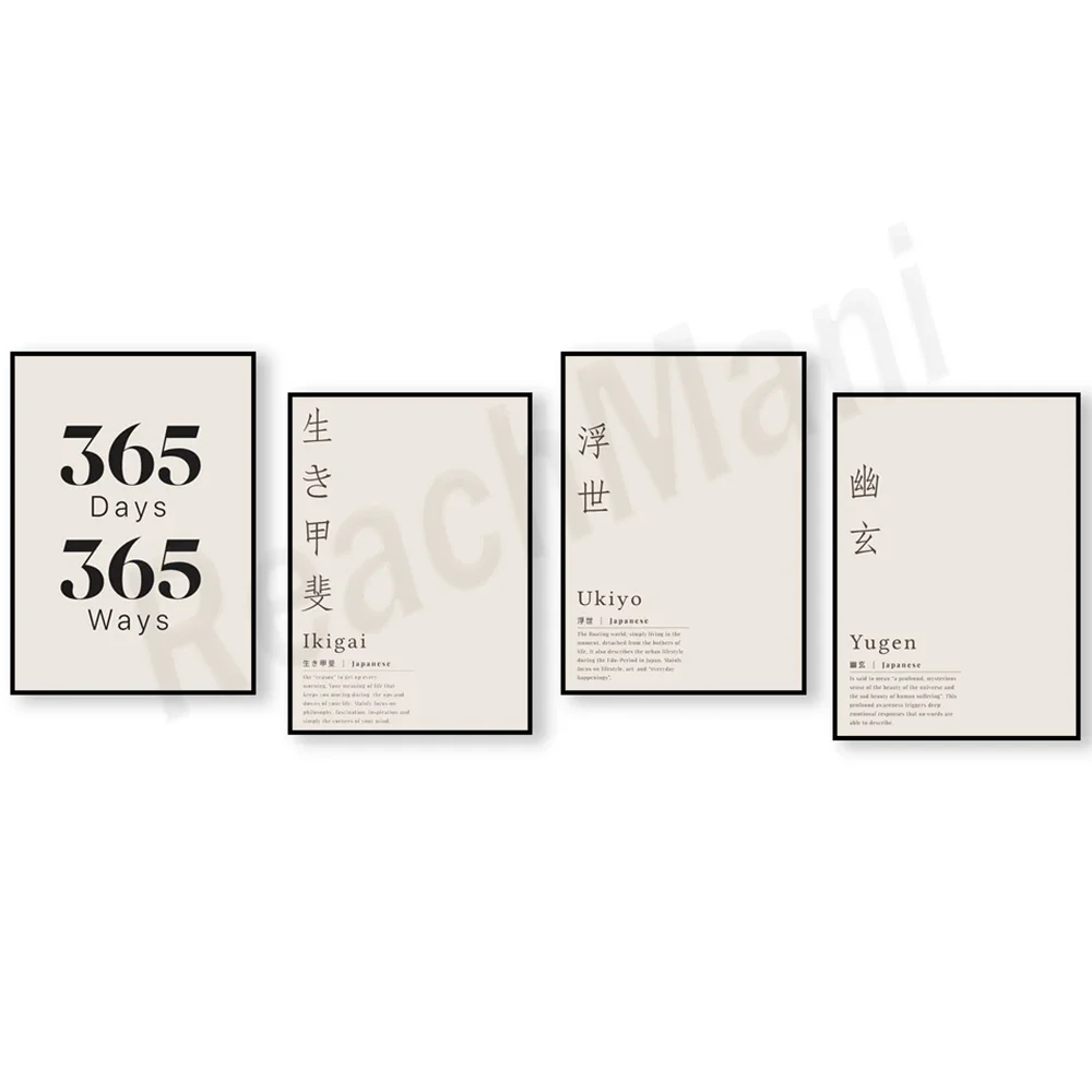 365 Days 365 Ways Motivational Quote Poster, Japanese Quote, Quote, Minimalist Yugen, Ikigai, Ukiyo Home Wall Art Poster