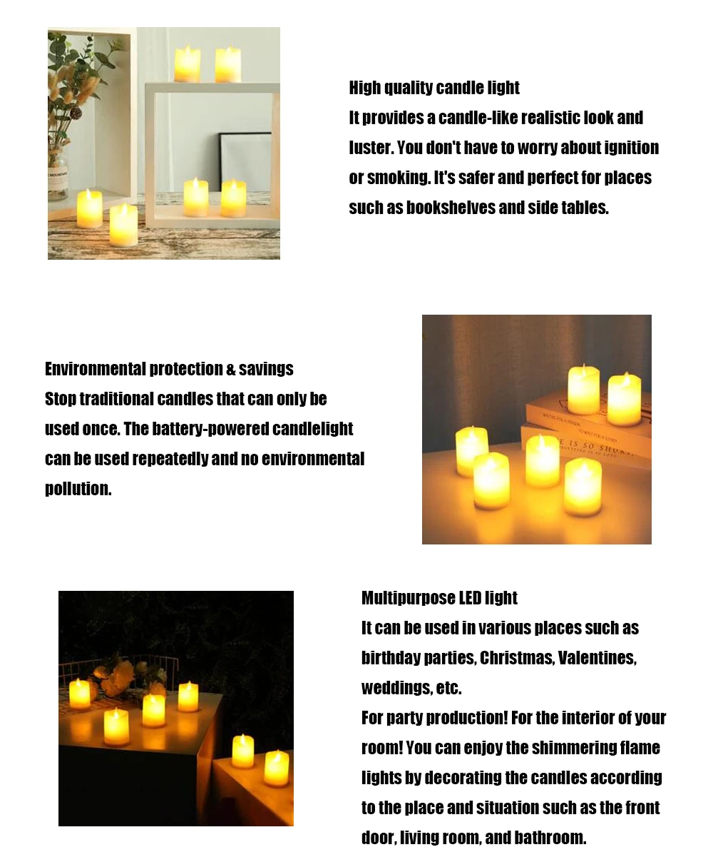 Features: Flameless candles, battery-operated LED candles, decorative candles, electronic candle set, wedding candles, home décor candles