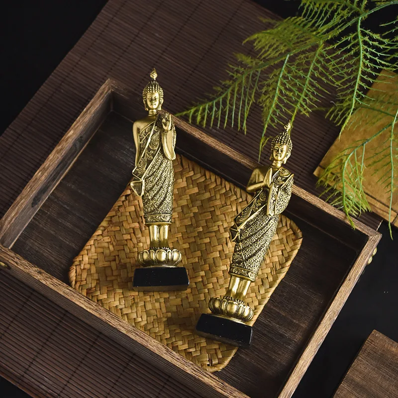 Buddha statue resin decorative items, standing Buddha, sitting Buddha, and Zen-inspired decorative items for the entrance hall